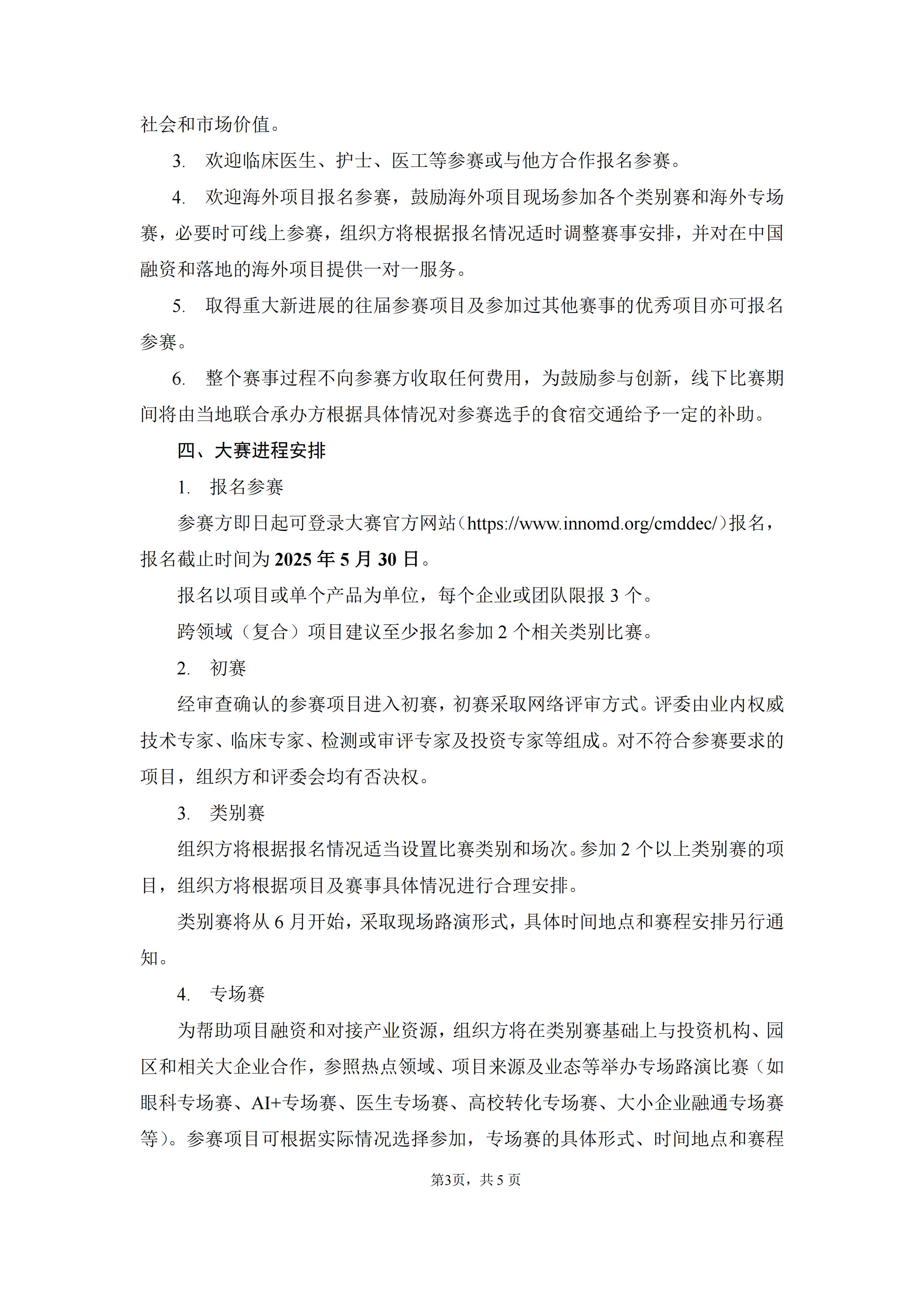 参赛方即日起可登录大赛官方网站(医疗器械创新网网://rl22222221.com/cmddec/)报名,报名截止时间为2025年5月30日。